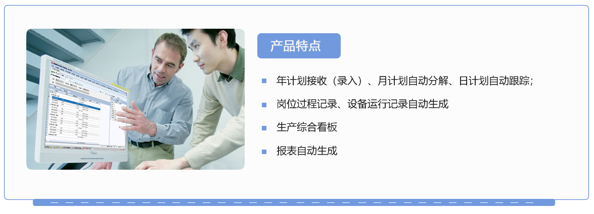 系统通过对生产过程相关业务的海量信息集成,实现生产数据与业务管理的无缝衔接,建立从计划、过程跟踪、岗位实绩的角度,建立完整、可控的生产闭环管理模式,管理者能够及时有效掌握生产实际进程,并根据现有库存、生产情况,制定合理的生产组织经营目标,是企业实现生产精益管理,降低成本、提高效率的必要信息化手段。